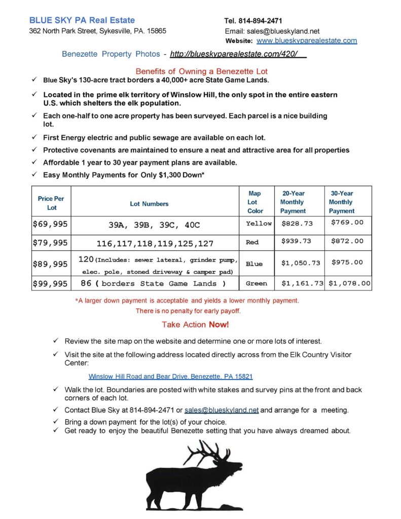Beautiful Benezette Building Lots for sale, off Winslow Hill Road