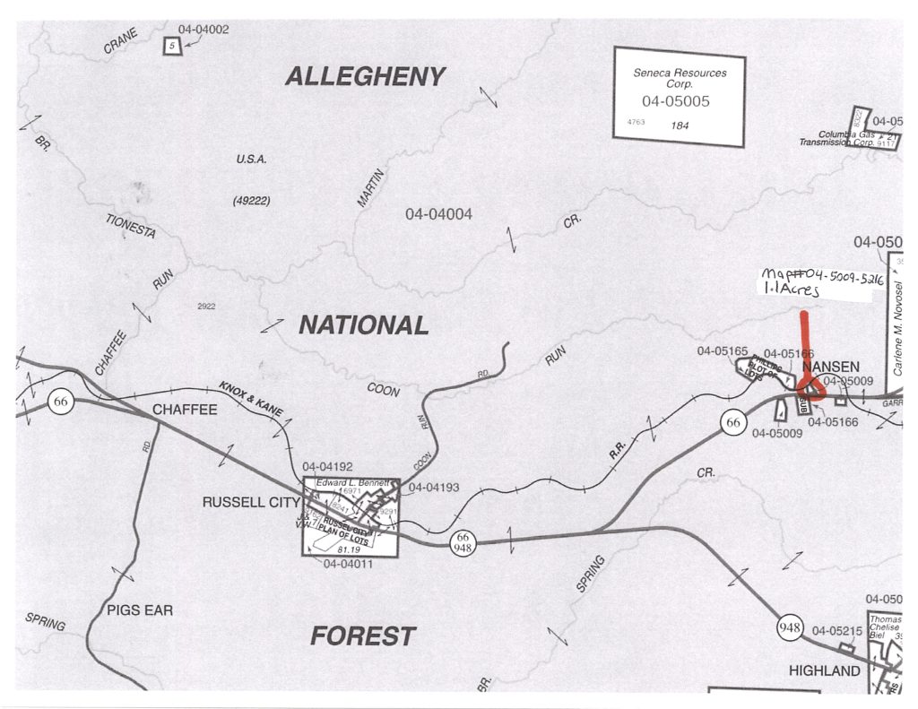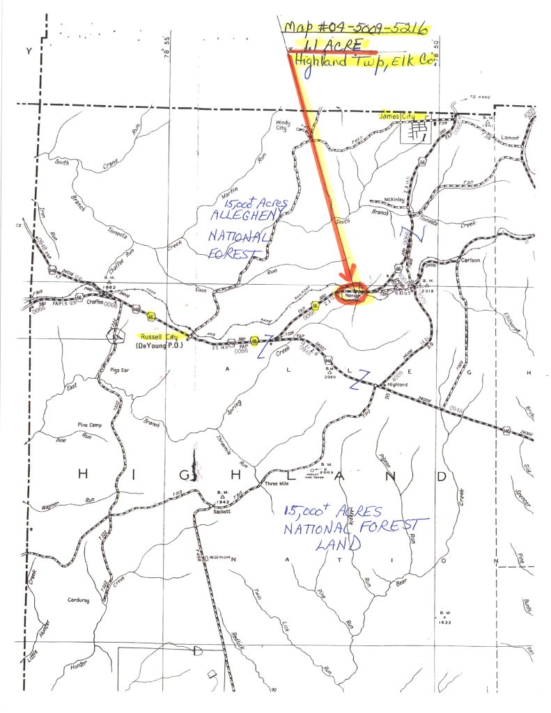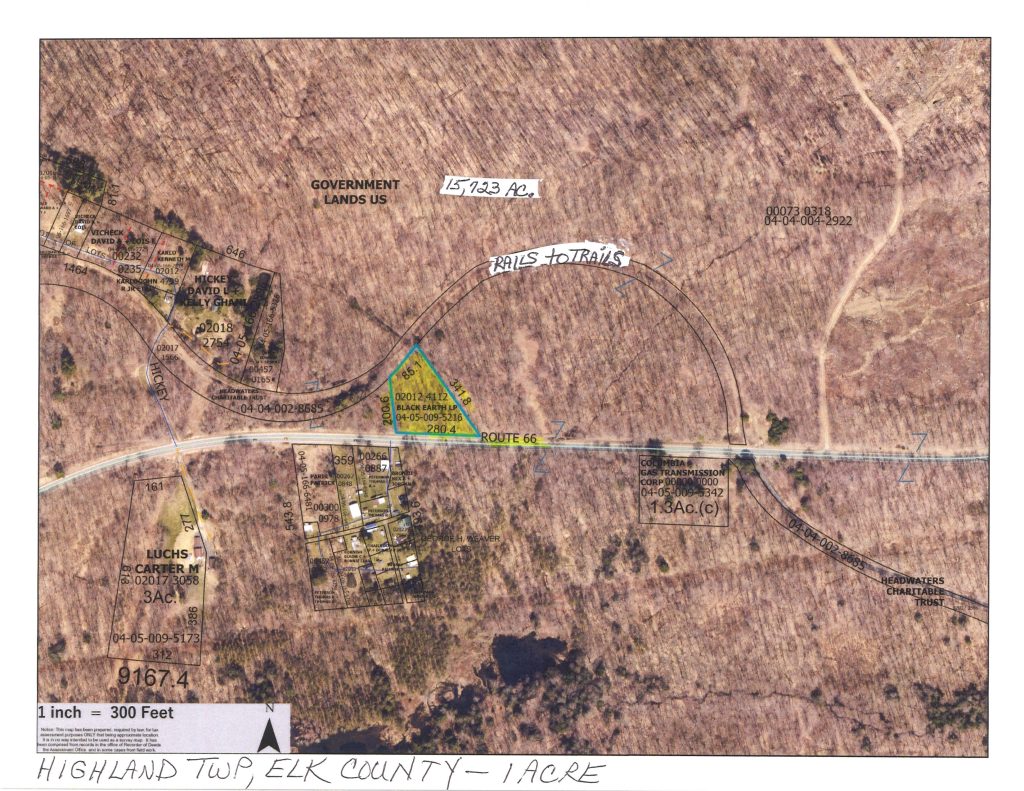 Gorgeous 1.1 Acres located 7 miles South of Kane, PA. This parcel is surrounded by the Allegheny National Forest with 15,000+ acres. It has great road frontage on Route 66. It also borders a very nice “Rails to Trails” public use walking or biking trail.