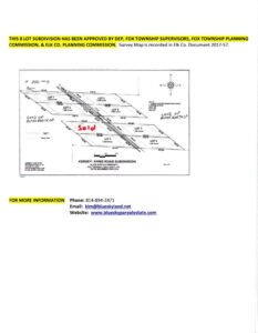 McKean County“LAFAYETTE-PINE RUN ROAD” SUBDIVISION: McKEAN COUNTY Beautifully lying building parcels along Pine Run Rd. AVAILABLE LOTS – # 8, 9, 10, and 12. Each lot is 110′ wide x 275′ deep. $24,995 lot price …